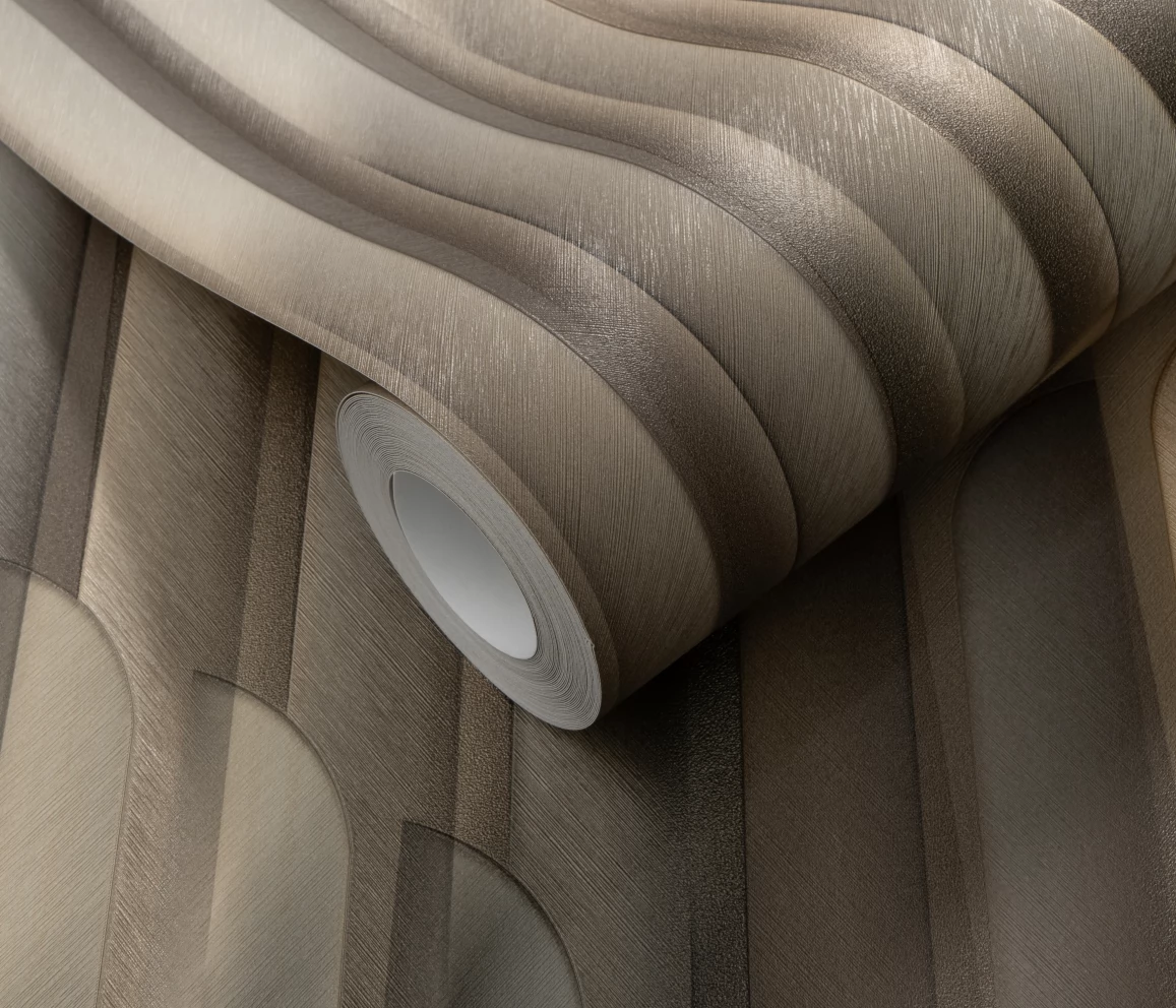 Elegancka tapeta z geometrycznym motywem w odcieniu beżu i szarości z subtelnym połyskiem.