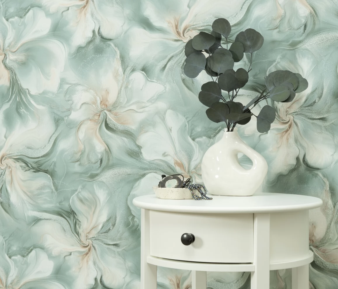 Tapeta niemieckiego producenta ERISMANN. Wzór kwiatowy w odcieniach turkusu. Tapeta łatwa w montażu.