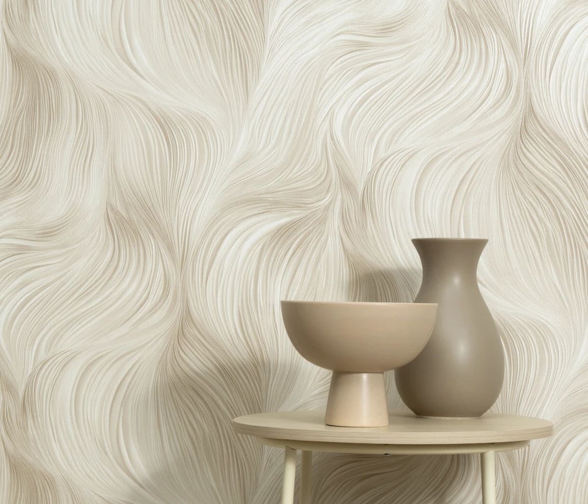 Winylowa, zmywalna tapeta na flizelinie niemieckiego producenta ERISMANN. Fala z efektem 3D w odcieniach beżu. Idealny wybór do nowoczesnych wnętrz.