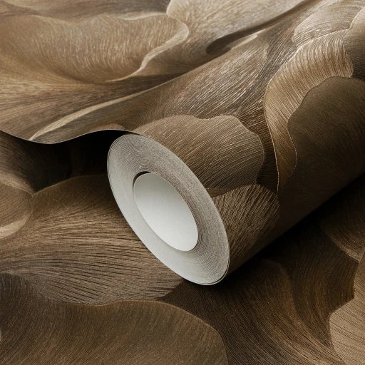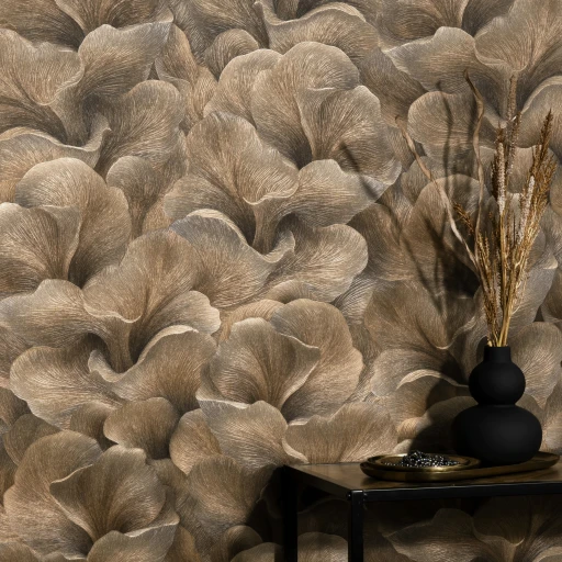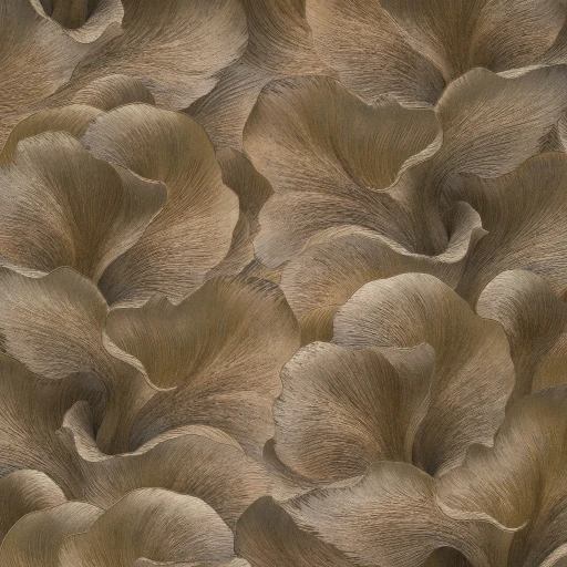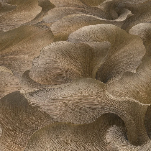 Tapeta niemieckiego producenta ERISMANN. Wzór przedstawiający motyw roślinny w odcieniu brązu i miedzi. Struktura powierzchni odzwierciedla ułożenie wzoru.