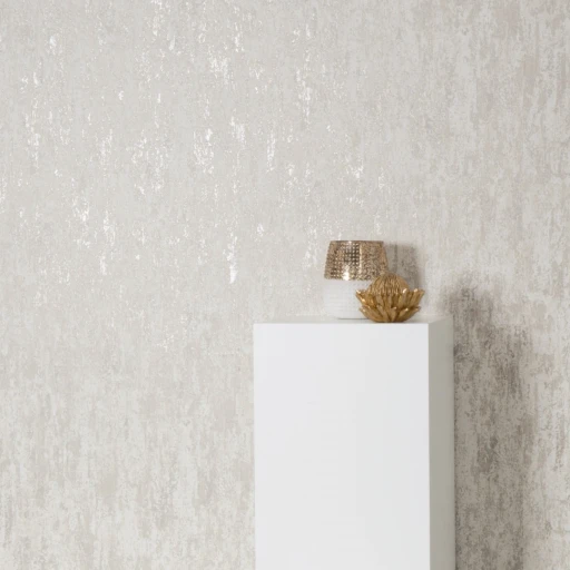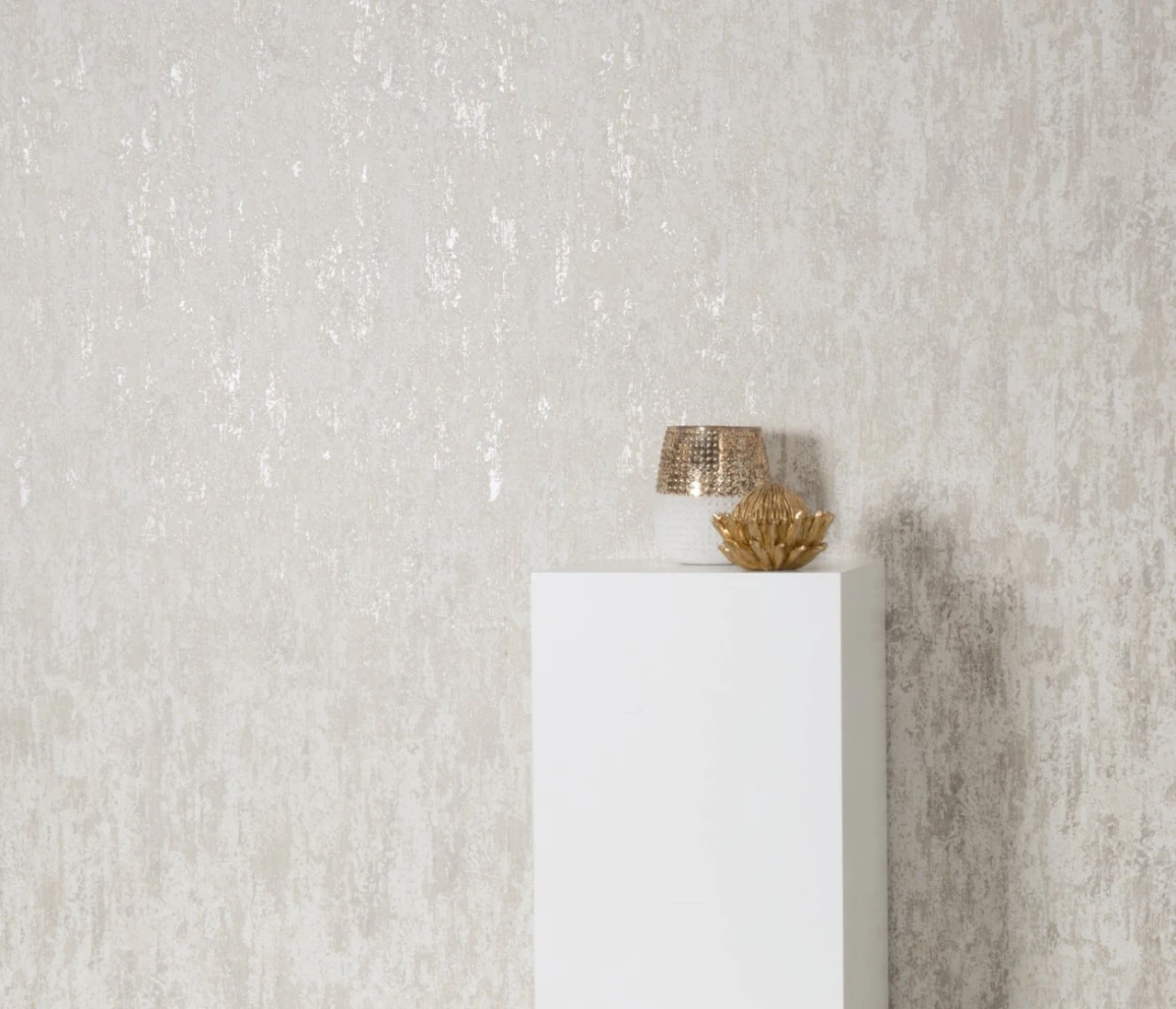 Wysokiej jakości winylowa, zmywalna tapeta na podłożu flizelinowym. Struktura, dekoracyjny tynk w kolorze beżowym z elementami metalicznego połysku. Tapeta dzięki swoim właściwościom idealnie skryje nierówności ścian.