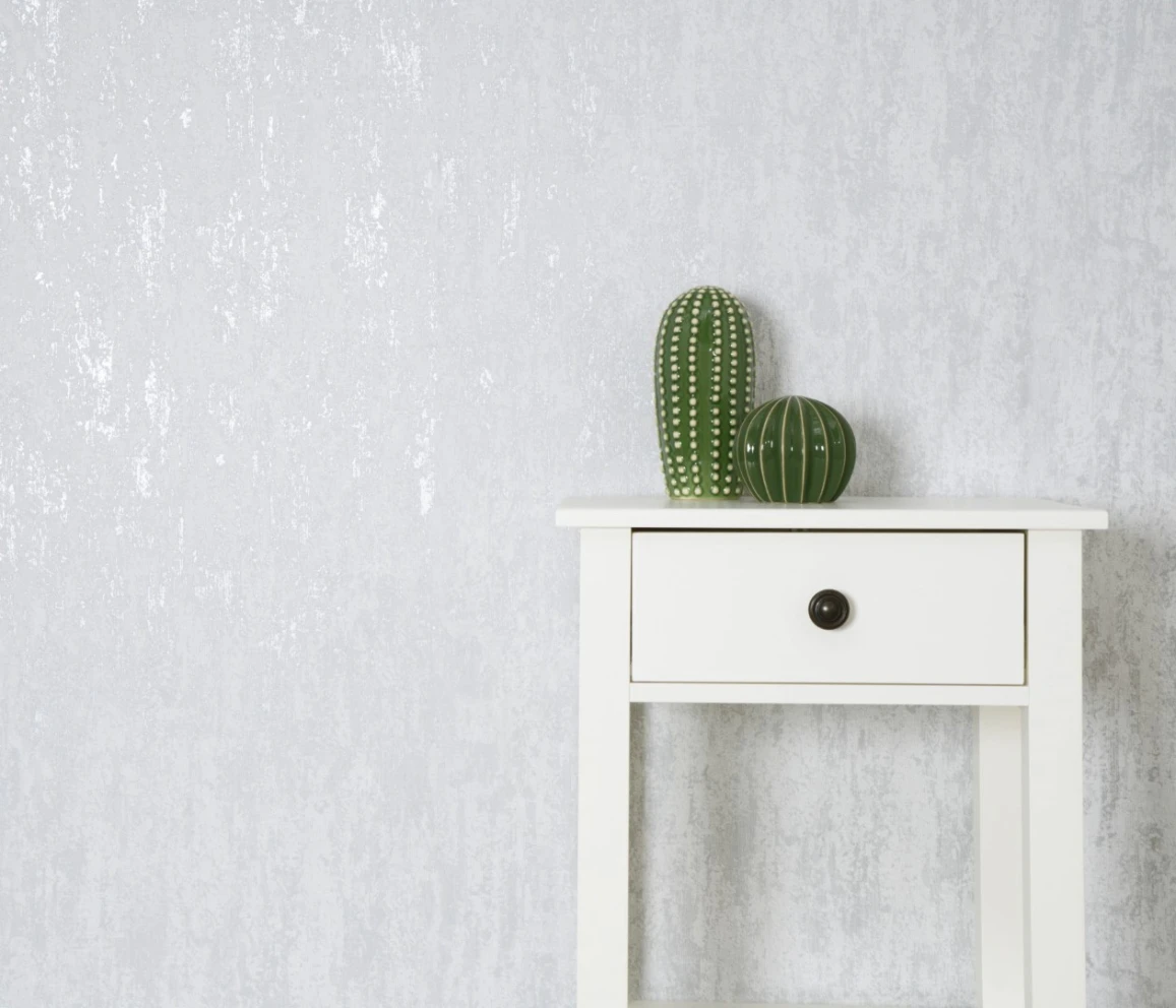 Wysokiej jakości winylowa, zmywalna tapeta na podłożu flizelinowym. Struktura, dekoracyjny tynk w kolorze szarym z elementami metalicznego połysku. Tapeta dzięki swoim właściwościom idealnie skryje nierówności ścian.