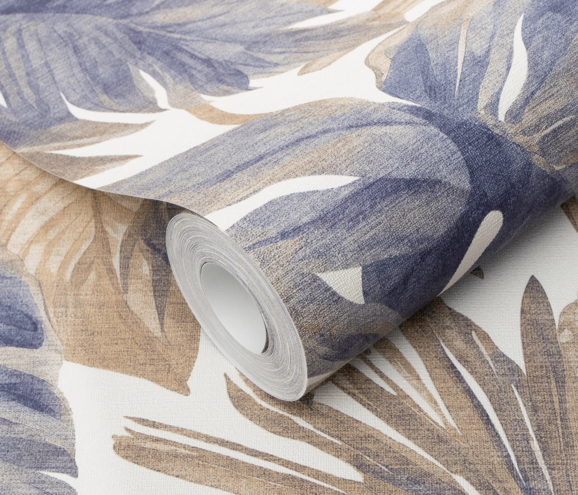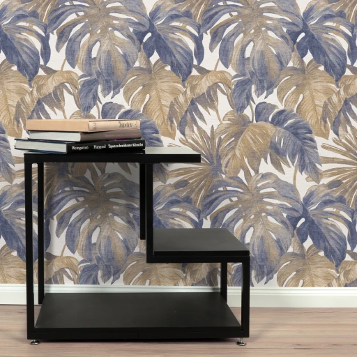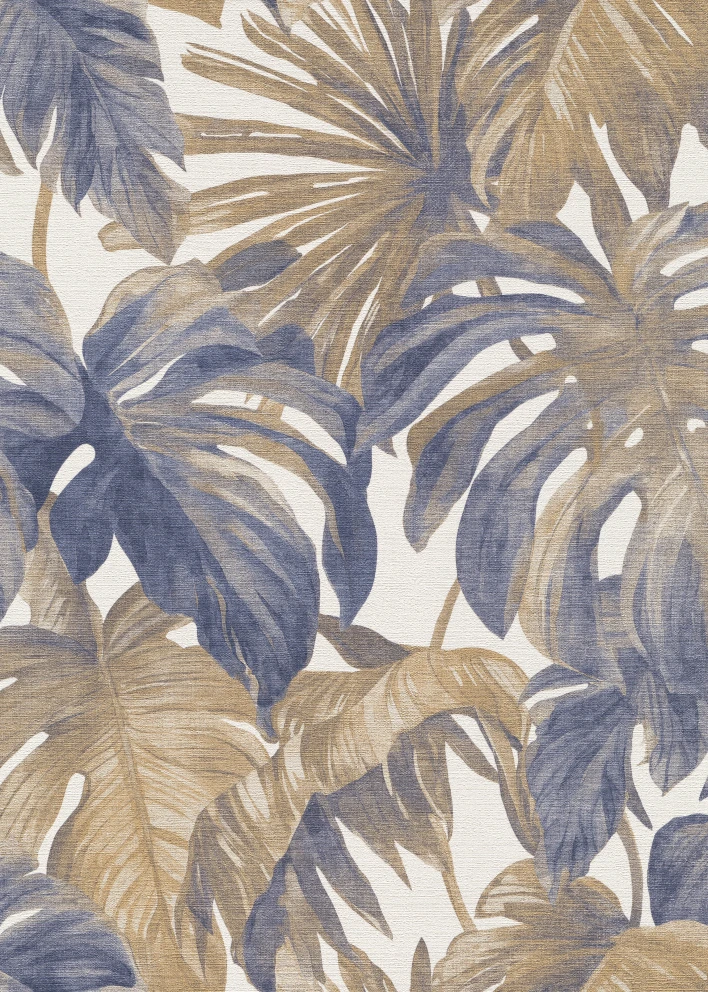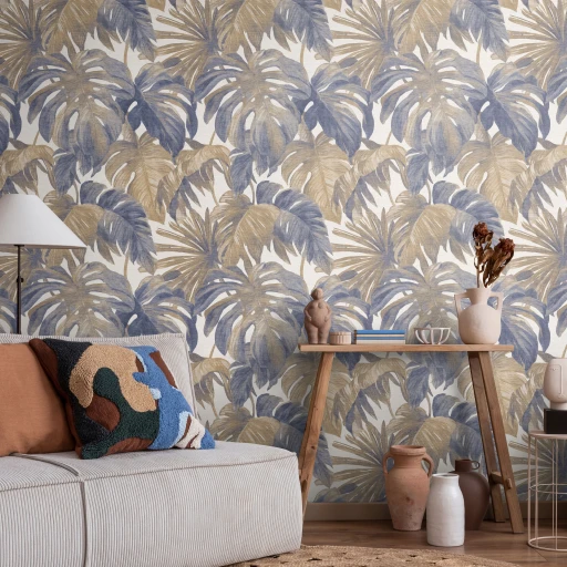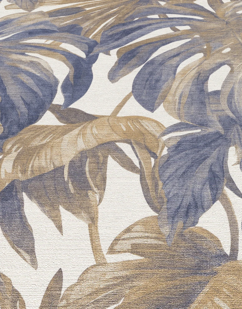 Tapeta niemieckiego producenta ERISMANN. Wzór przedstawiający motyw roślinny w stylu boho. Struktura powierzchni imituje tkaninę.