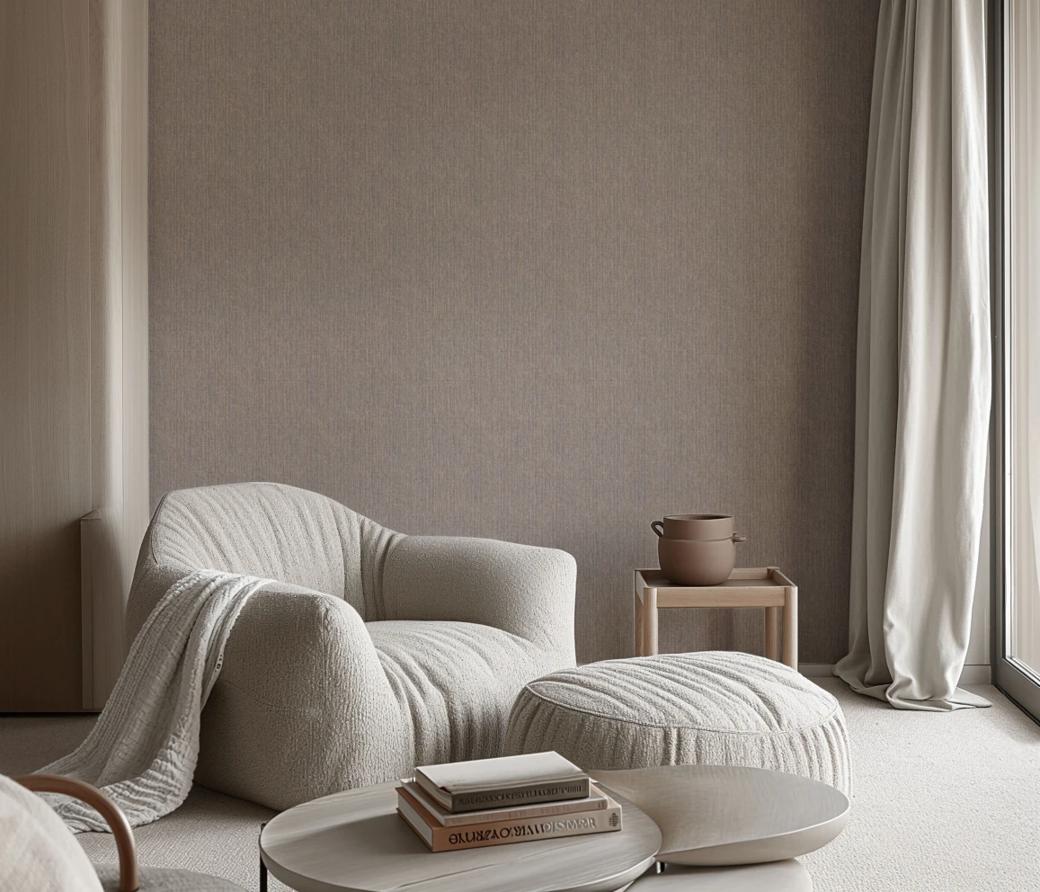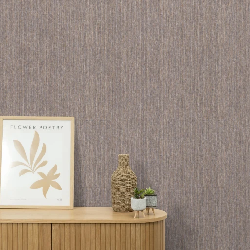 Winylowa tapeta na podłożu flizelinowym. Imitacja płótna w odcieniach granatu i brązu.