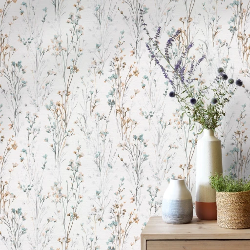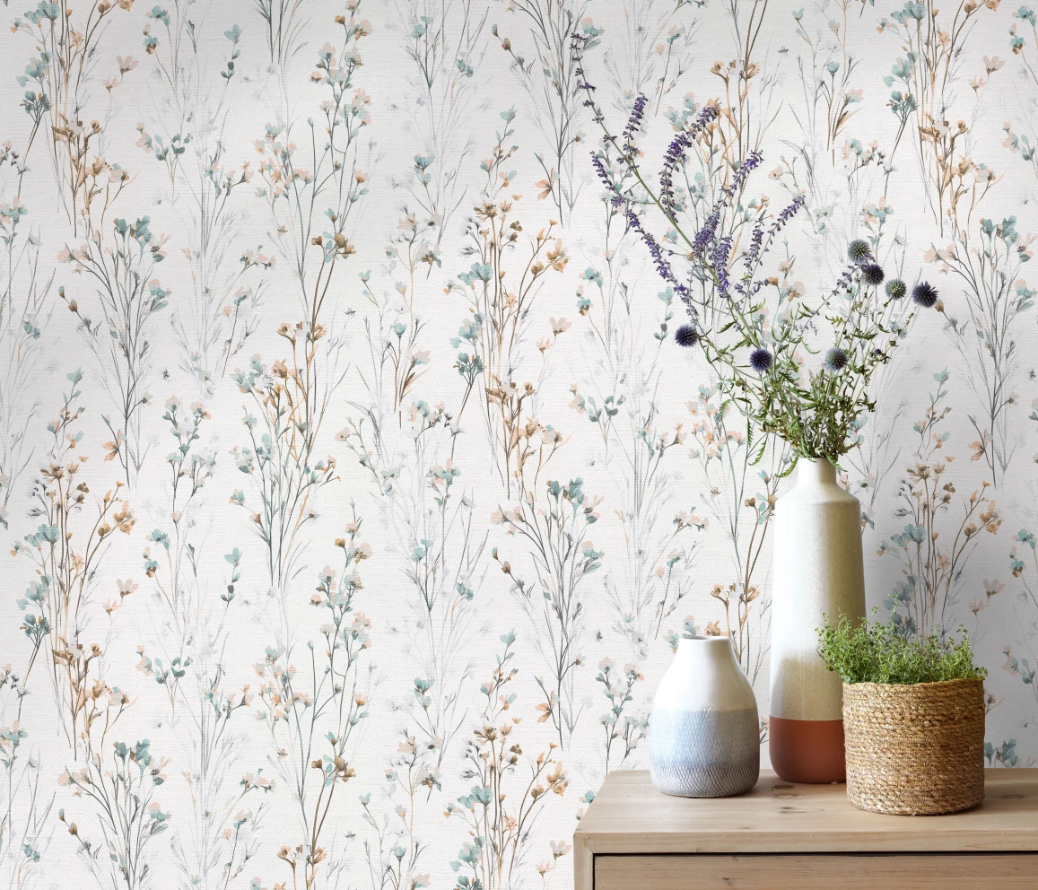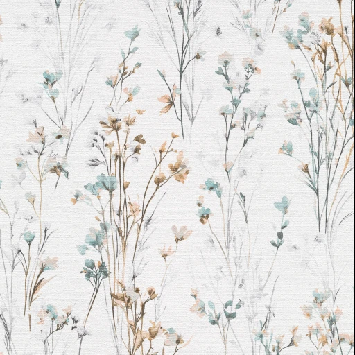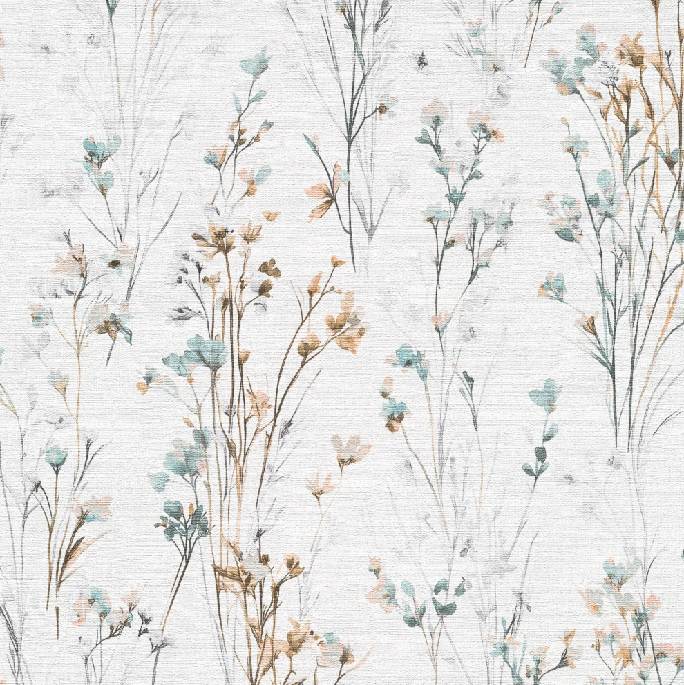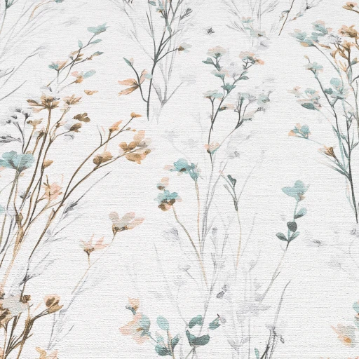 Tapetę 10561-35 ŁĄKA KWIATY TURKUS znajdziesz w kategoriach: do salonu sypialni jadalni, do kuchni i łazienki, do przedpokoju, winylowe na flizelinie, winylowe zmywalne, roślinno kwiatowe, Tapety w stylu skandynawskim, do sypialni, ,