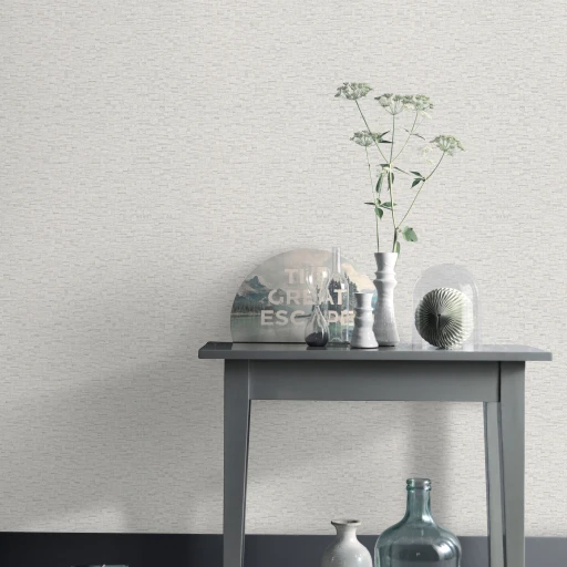 Winylowa tapeta na podłożu flizelinowym. Wzór pełniący funkcję tła z drobnym printem w odcieniu beżu.