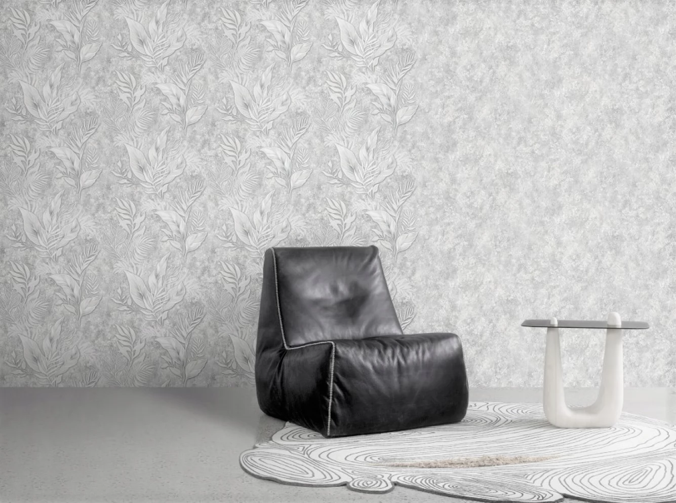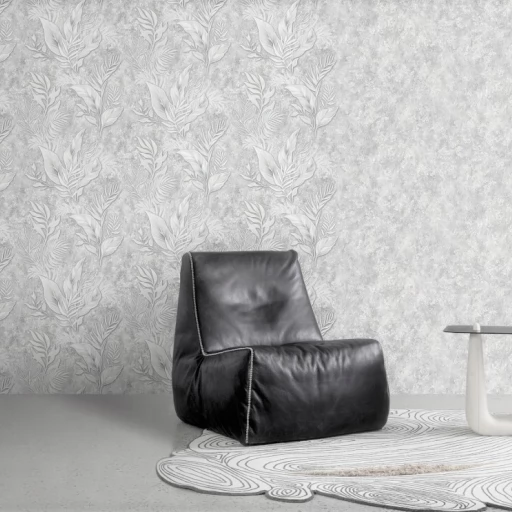 Elegancka i nowoczesna tapeta z modnym motywem betonowej przecierki. Wykorzystano tu eleganckie połączenie szarości i bieli z dyskretnym dodatkiem brokatu. Wyraźna struktura powierzchni tworzy wyraźny efekt 3D.