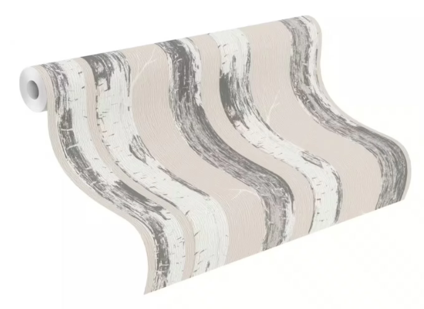 Papierowa tapeta przedstawiająca skandynawski motyw drzew w odcieniach beżów.