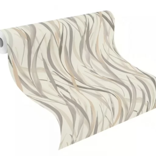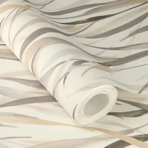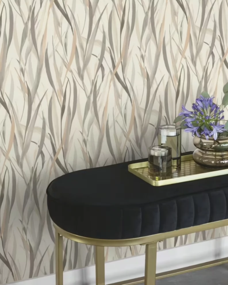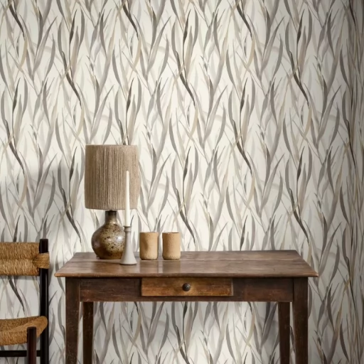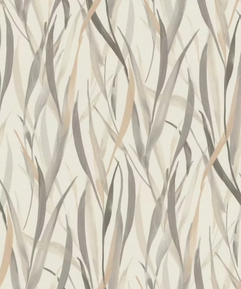 Winylowa, zmywalna tapeta niemieckiego producenta RASCH. Elegancki, roślinny motyw traw w odcieniach beżu.
