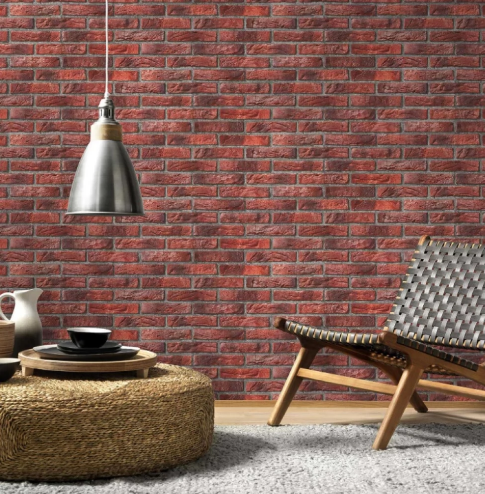 Modny motyw czerwonej cegły z efektem 3D. Tapeta produkcji niemieckiej fabryki Erismann. Oryginalny produkt. Tapeta papierowa.