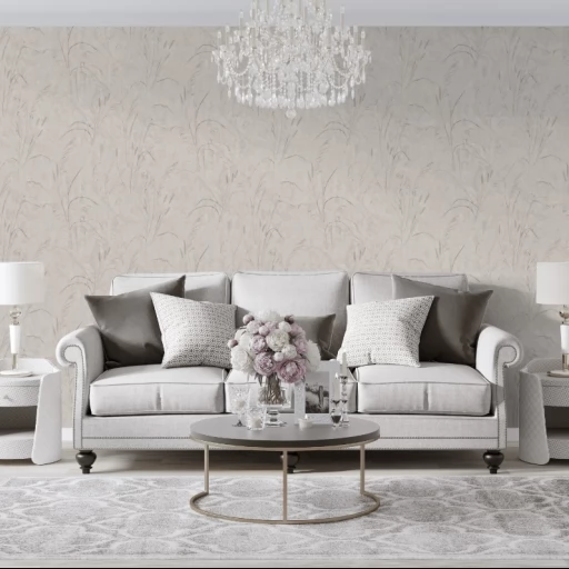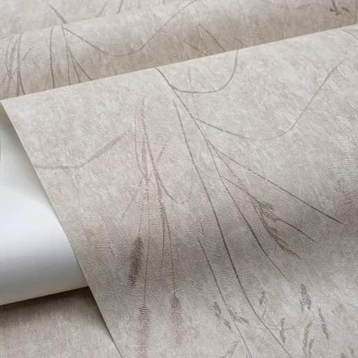 Winylowa, zmywalna tapeta producenta SINTRA. Motyw traw i kłosów w stylu boho w odcieniach beżu.