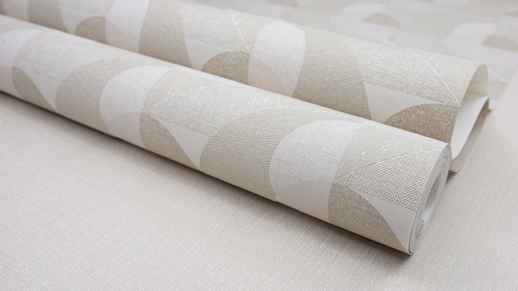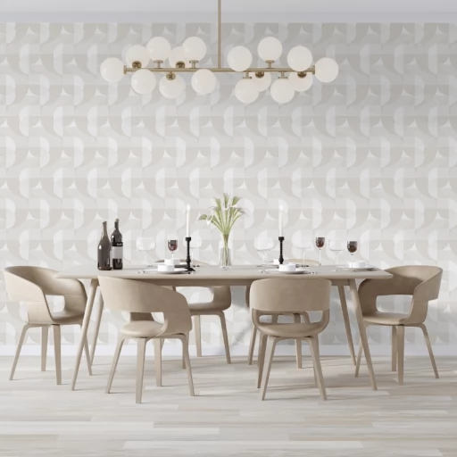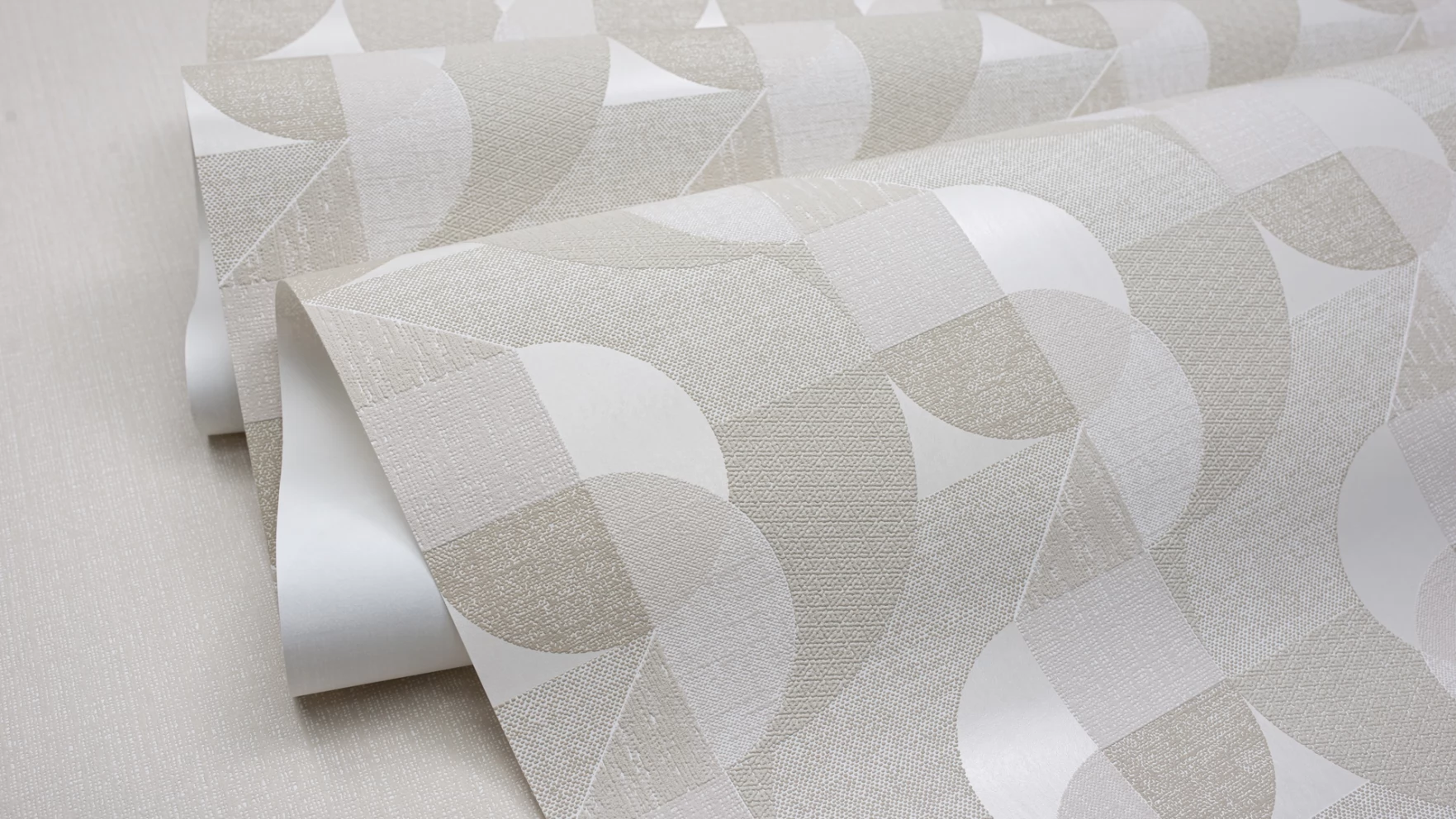 Winylowa, zmywalna tapeta producenta SINTRA. Motyw geometryczny z efektem 3D w odcieniach beżu brązu.