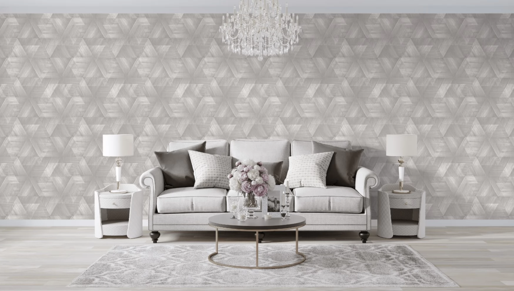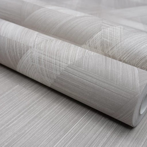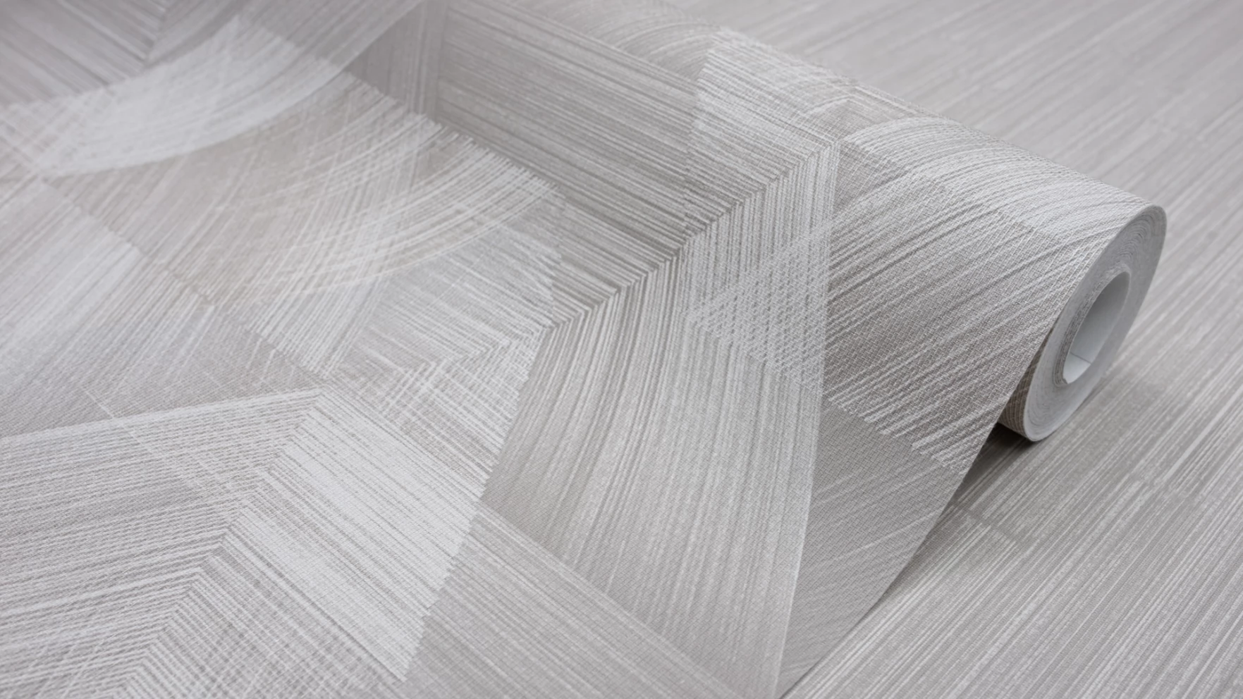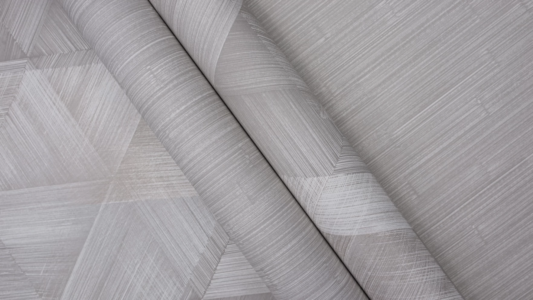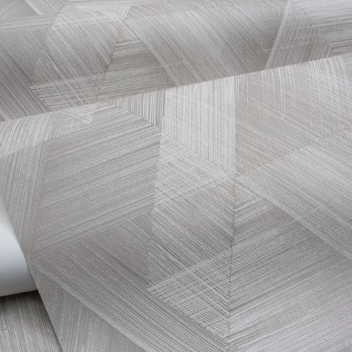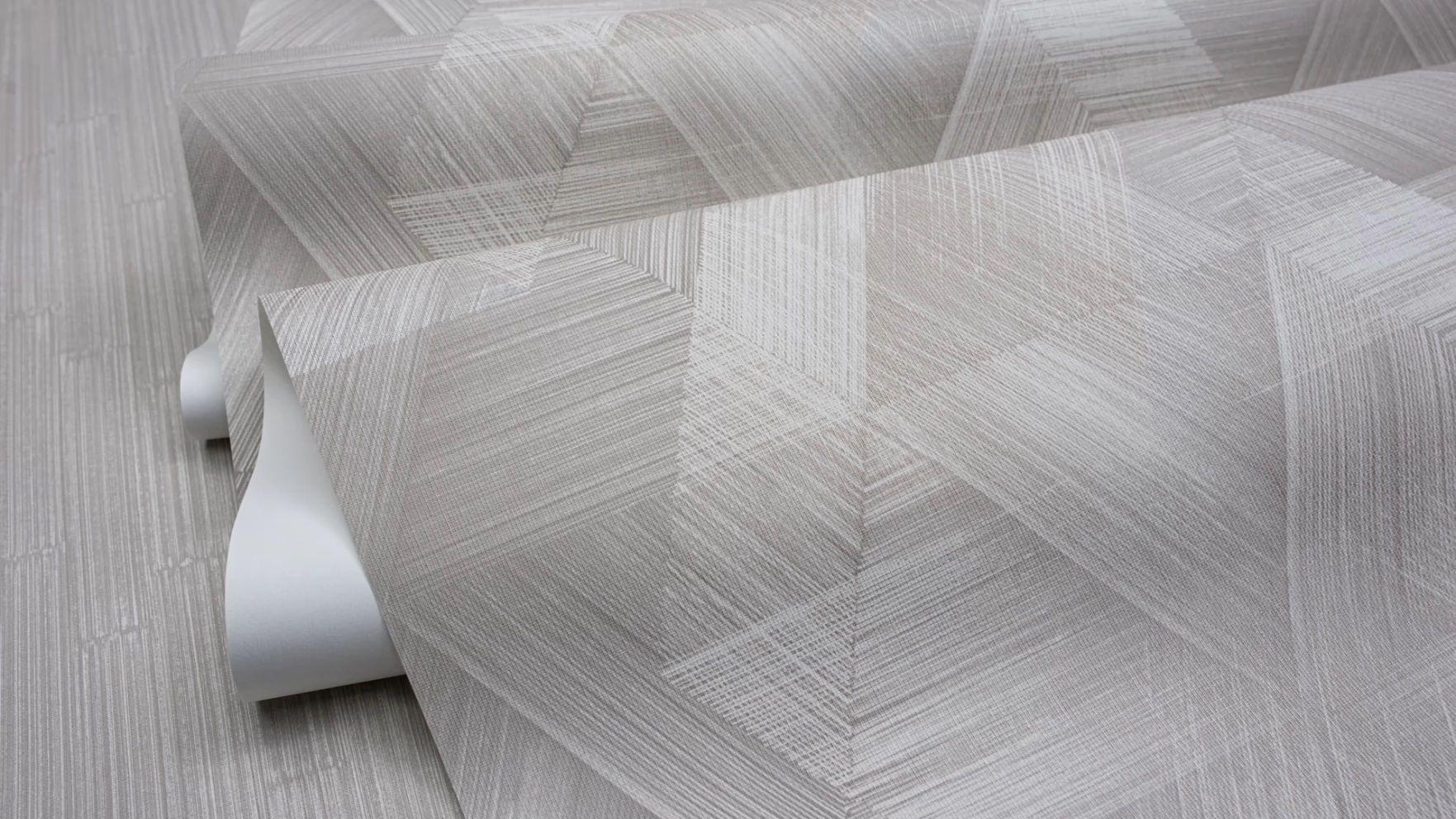 Winylowa, zmywalna tapeta producenta SINTRA. Motyw geometryczny z efektem 3D w odcieniach chłodnego beżu.