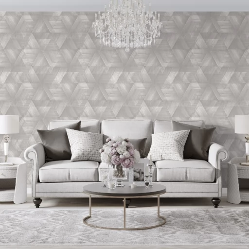 Tapetę 529645 GEOMETRYCZNA TRÓJKĄTY BEŻ znajdziesz w kategoriach: geometryczne, do salonu sypialni jadalni, do kuchni i łazienki, do przedpokoju, winylowe na flizelinie, winylowe zmywalne, nowoczesne, Tapety 3d, do sypialni, ,