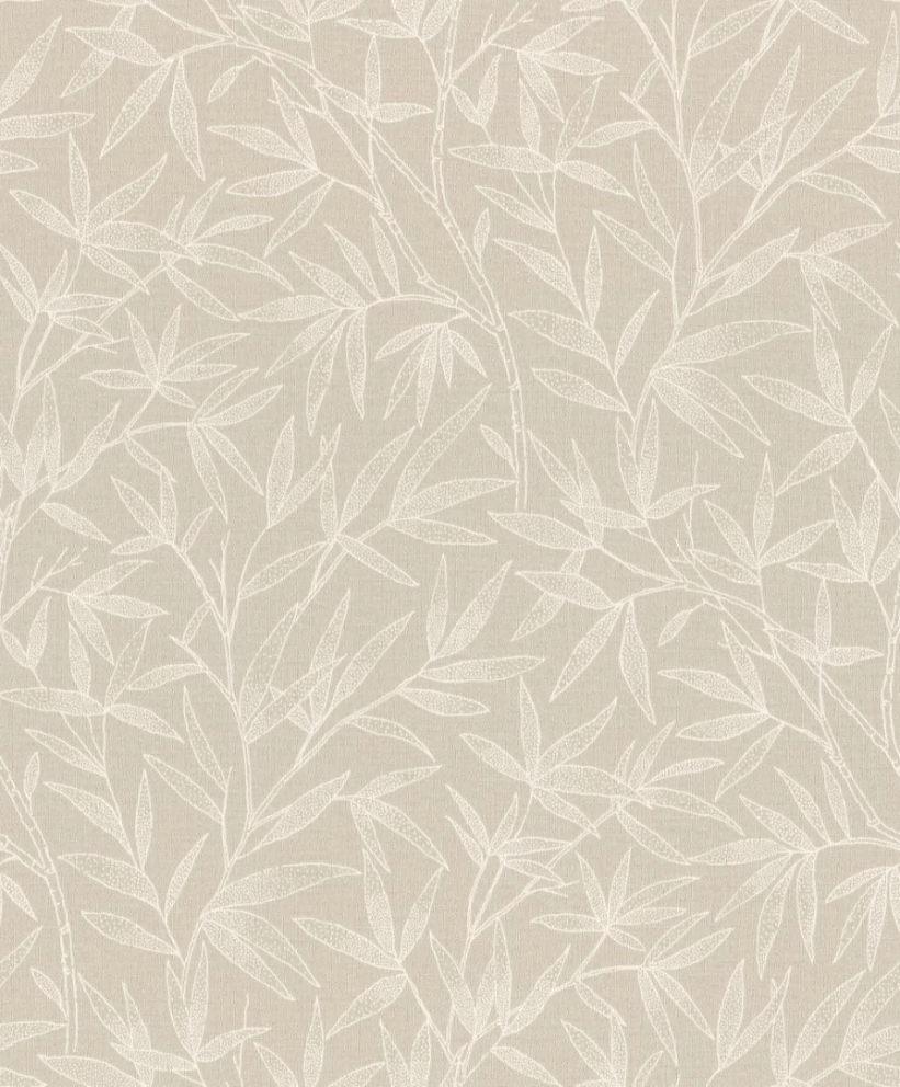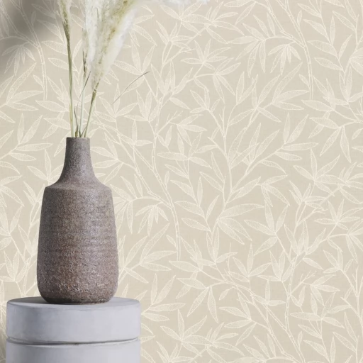 Elegancka w stylu boho tapeta z motywem liści w odcieniu beżu.