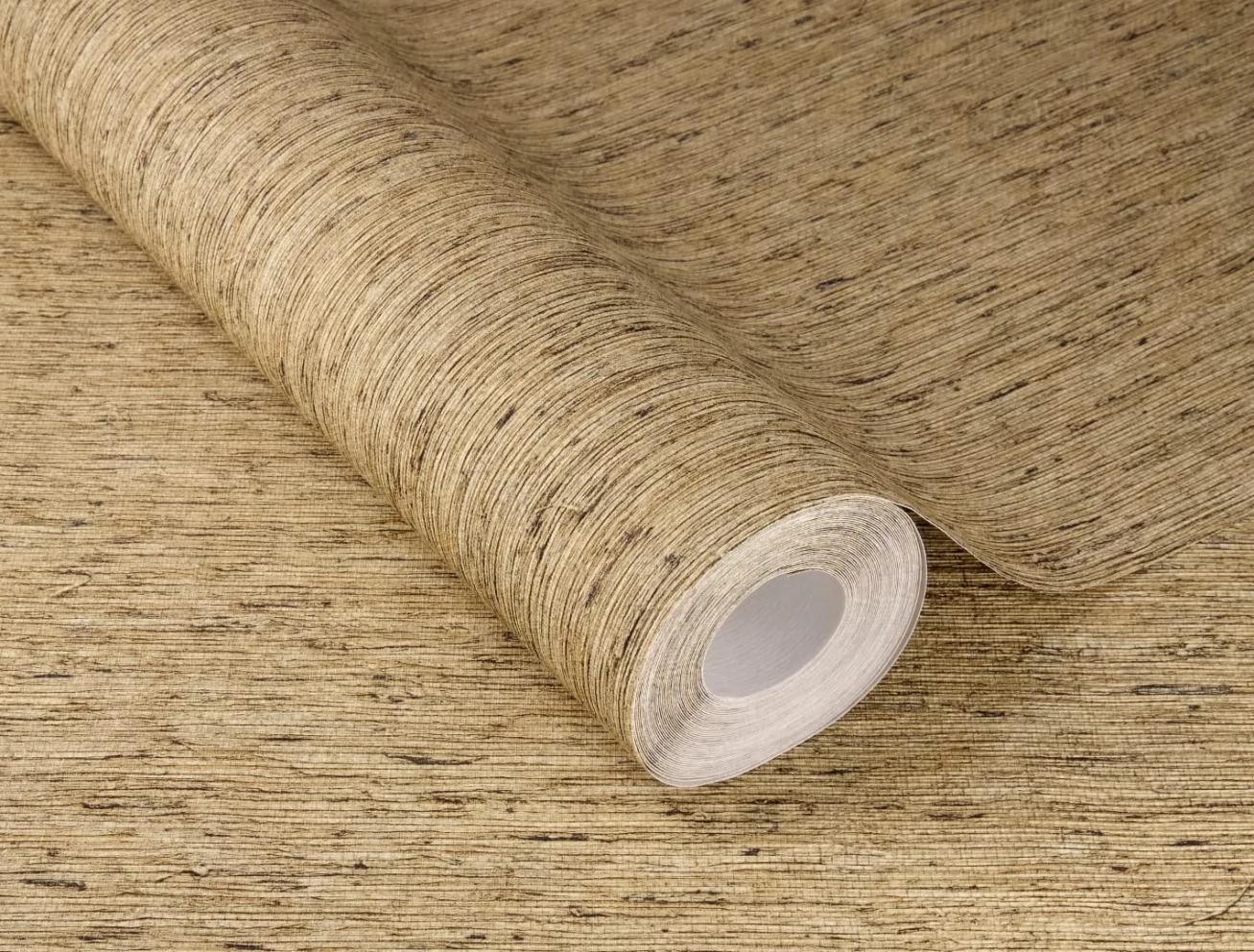 Tapeta przedstawiająca wzór pełniący funkcję tła o wyglądzie maty z naturalnego materiału w kolorze beżu, brązu. Tapeta winylowa na flizelinie.