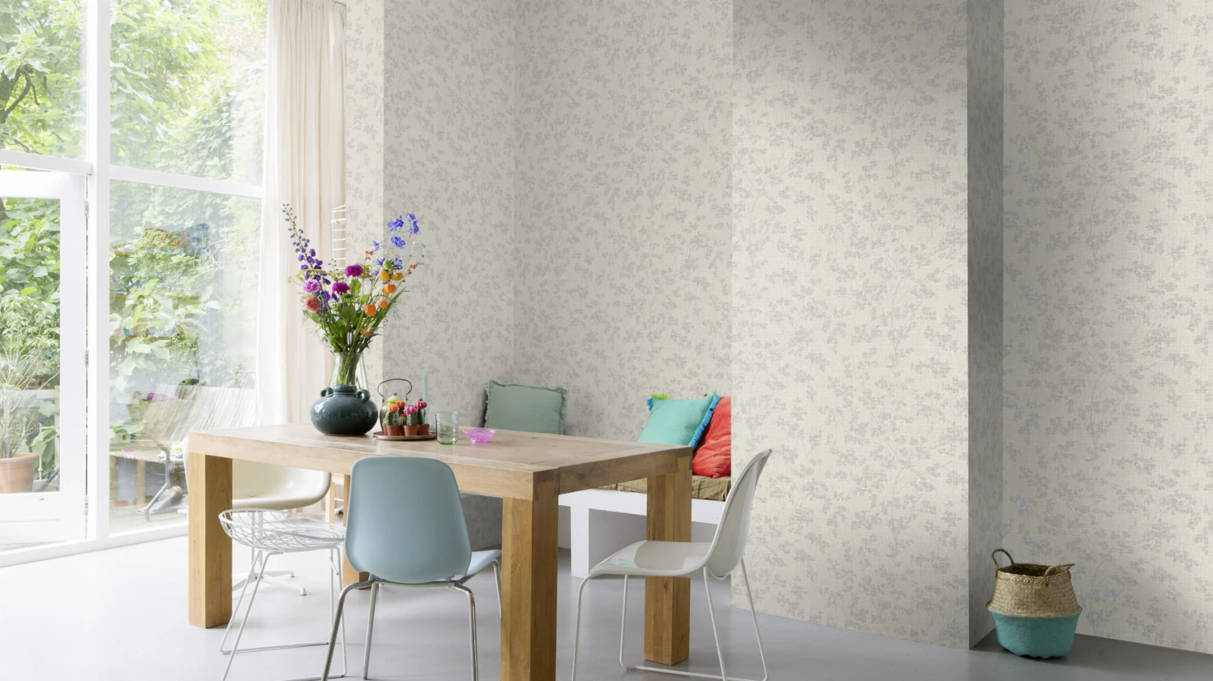 Tapetę 653861 SZARE KWIATKI BOHO znajdziesz w kategoriach: do salonu sypialni jadalni, do kuchni i łazienki, do przedpokoju, winylowe na flizelinie, winylowe zmywalne, roślinno kwiatowe, Tapety w stylu skandynawskim, do sypialni, ,
