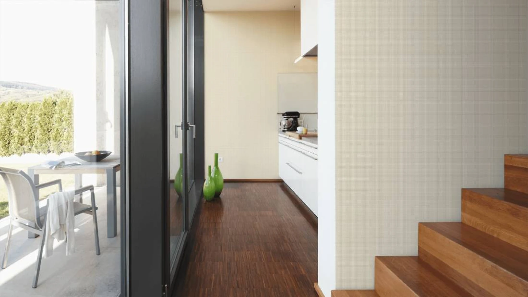Winylowa, zmywalna tapeta niemieckiego producenta AS CREATION. Neutralna dekoracja, wzór przedstawiający drobną kratkę, pepitkę w beżowym kolorze. Produkt na podłożu z flizeliny.