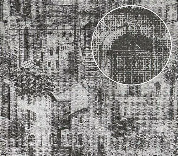 Ekskluzywna tapeta belgijskiego producenta ATLAS WALLCOVERINGS z kolekcji SIGNATURE. Romantyczne, włoskie uliczki wijące się pomiędzy zabytkowymi kamienicami. Kolorystyka to jaśniutki krem tła oraz główny motyw w odcieniu dojrzałego wina. Struktura powierzchni w wyglądzie i dotyku przypomina tkaninę, przez co całość wygląda jak wiekowy gobelin. Kolorystyka to czerń oraz srebro, któro gdy nie lśni, wydaje się być szarością. Produkt wykonany z czystej flizeliny pokrytej utwardzonym akrylem o zupełnie gładkiej powierzchni. Załączone zdjęcie dobrze oddaje rzeczywistą kolorystykę tapety.