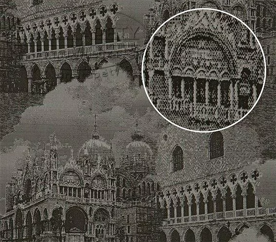 Ekskluzywna tapeta belgijskiego producenta ATLAS WALLCOVERINGS z kolekcji SIGNATURE. Wzornictwo nawiązujące do czasów i architektury renesansu. Cała powierzchnia tapety została pokryta zarysami wspaniałych, monumentalnych budowli z wyraźnie widocznymi arkadowymi podcieniami. Struktura powierzchni w wyglądzie i dotyku przypomina tkaninę, przez co całość wygląda jak wiekowy arras. Kolorystyka to ciemna szarość oraz czarna barwa głównego motywu. Niektóre elementy dodatkowo wyposażono w bardzo intensywny, metaliczny, srebrny połysk przez co całość wydaje się być jeszcze bardziej interesująca. Produkt wykonany z czystej flizeliny pokrytej utwardzonym akrylem o zupełnie gładkiej powierzchni. Załączone zdjęcie dość dobrze ukazuje rzeczywisty wygląd tapety.